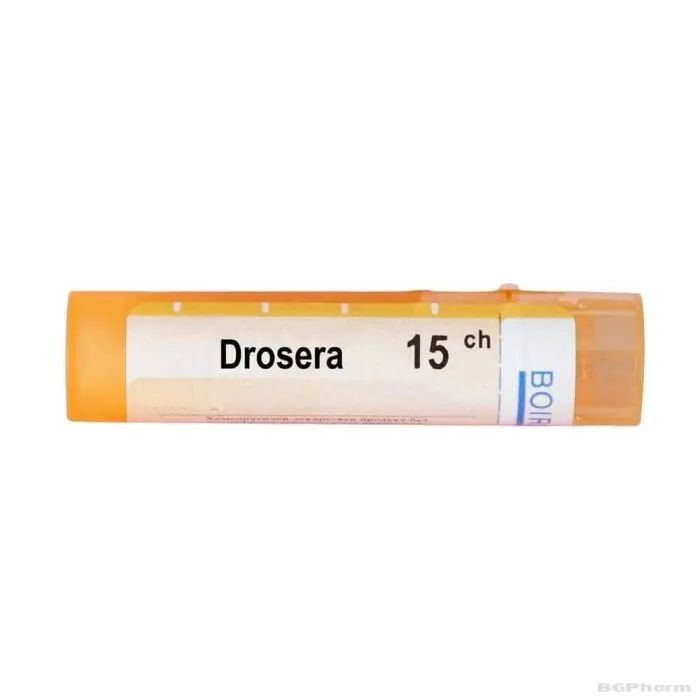 ПОКАЗАНИЯ: Drosera е висококачествен хомеопатичен препарат, който има благоприятен ефект при симптоми на кашлица и аденопатии. Дросера се прилага при пристъпна и спастична кашлица. Помага при обща отпадналост, цервикални и трахеобронхиални аденопатии, които провокират кашлицата поради натиск. Съдейства при артрит от вирусен произход и остеопороза.