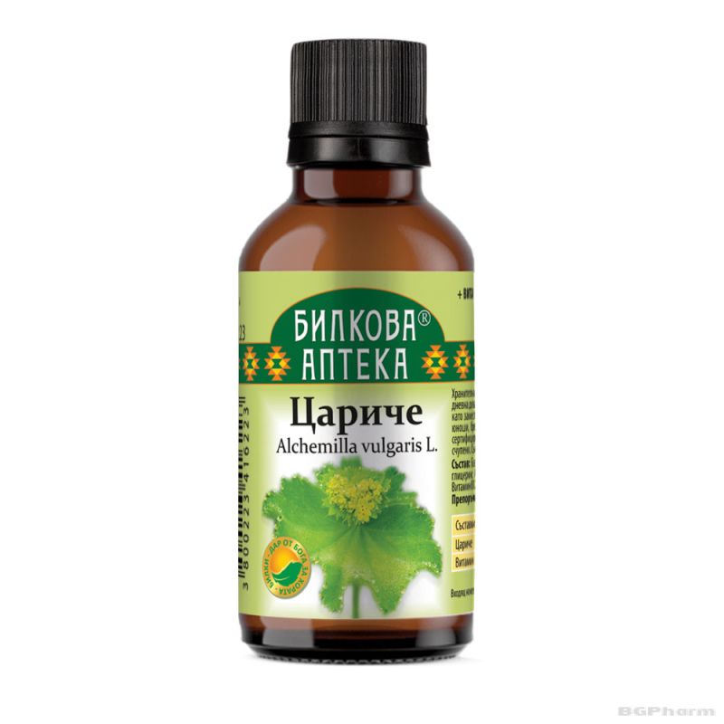 Билков екстракт, предназначен за подпомагане на женското здраве и хормонален баланс. Основната съставка е екстракт от билката цариче (Alchemilla vulgaris), известна със своето благоприятно действие върху ендокринната и полова система. Тинктурата може да помогне при регулиране на менструалния цикъл, облекчаване на симптомите на менопауза и намаляване на прекомерното менструално кървене, благодарение на високото съдържание на танини и салицилова киселина в билката. Препоръчителната доза е 25 капки, разтворени в 50 мл вода, приемани три пъти дневно. Продуктът не се препоръчва за бременни и кърмещи жени без консултация със специалист.