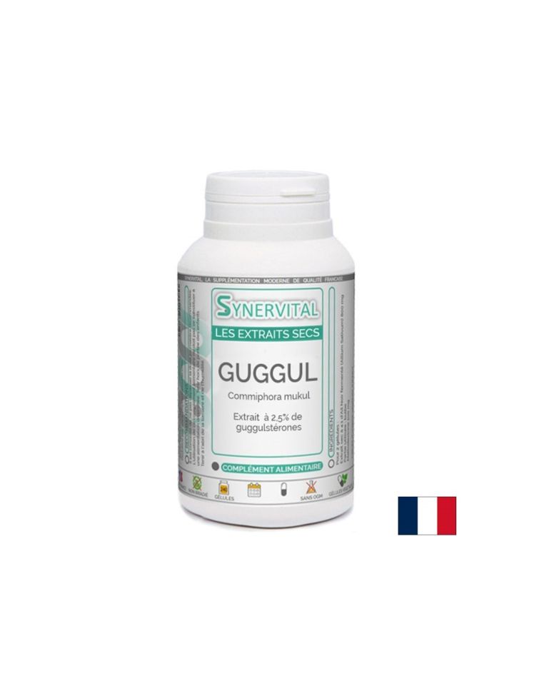 Хранителна добавка, съдържаща 200 mg екстракт от гугул (Commiphora mukul) във всяка капсула. Гугулът е смолист екстракт от дървото Commiphora mukul, традиционно използван в аюрведичната медицина за поддържане на нормални нива на холестерол и триглицериди. Основните му активни съединения – гугулстероните – подпомагат метаболизма на липидите, като стимулират разграждането на LDL холестерола и подкрепят чернодробната функция. Продуктът е подходящ за хора, стремящи се към регулиране на липидния профил и поддържане на сърдечно-съдовото здраве. Препоръчителната дневна доза е от 4 до 6 капсули, приемани преди основните хранения. Не се препоръчва употреба при бременност, кърмене или при прием на медикаменти за щитовидната жлеза без консултация с лекар.