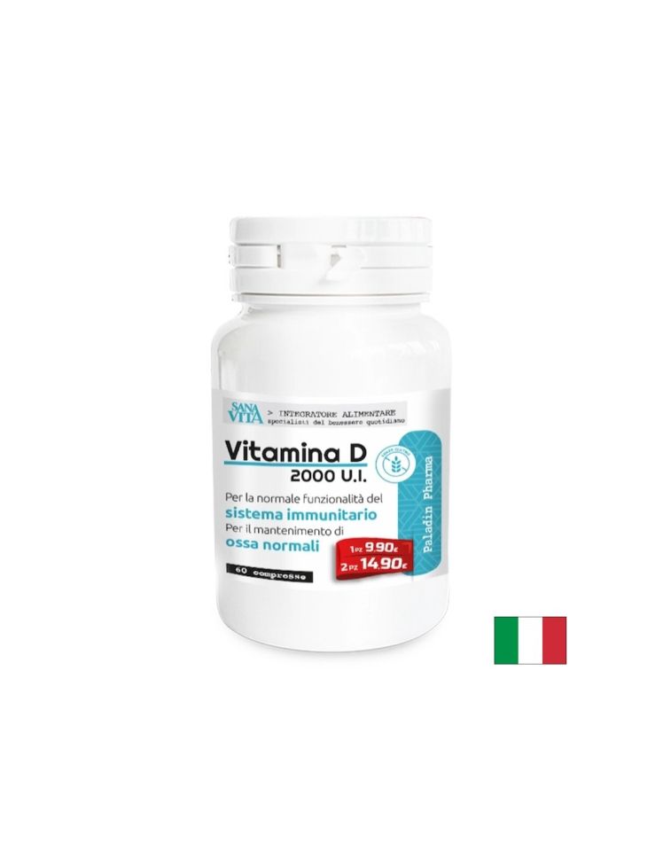 Хранителна добавка, съдържаща 2000 международни единици (≈50 µg) витамин D3 (холекалциферол) в една таблетка, като опаковката осигурява двумесечен прием; витамин D3 подпомага усвояването на калций и фосфор за поддържане на здрави кости и зъби, укрепва мускулната функция, подпомага нормалната работа на имунната система и допринася за намаляване на възпалителните процеси, а препоръчителният прием е по 1 таблетка дневно по време на хранене, съдържащо мазнини, подходящ за възрастни и подрастващи над 12–16 години след консултация с лекар, особено при недостиг на витамин D, ограничено излагане на слънце или при хора над 65 години.