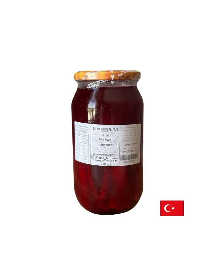 Продукт, който подпомага доброто храносмилане, баланса на чревната микрофлора и естествената детоксикация на организма чрез традиционна ферментация на растителни съставки. Напитката се приготвя от ферментирал сок от черен морков, ряпа, булгур и сол, като естественият процес на млечнокисела ферментация създава полезни органични киселини и пробиотични култури, които подпомагат стомашно-чревния комфорт, стимулират апетита и допринасят за по-добро усвояване на хранителните вещества. Адана шалгам е подходяща за ежедневна консумация, като препоръчителният прием е по 1 чаша (около 200 ml) дневно, самостоятелно или като допълнение към хранене, за поддържане на нормалното храносмилане и освежаващ ефект.