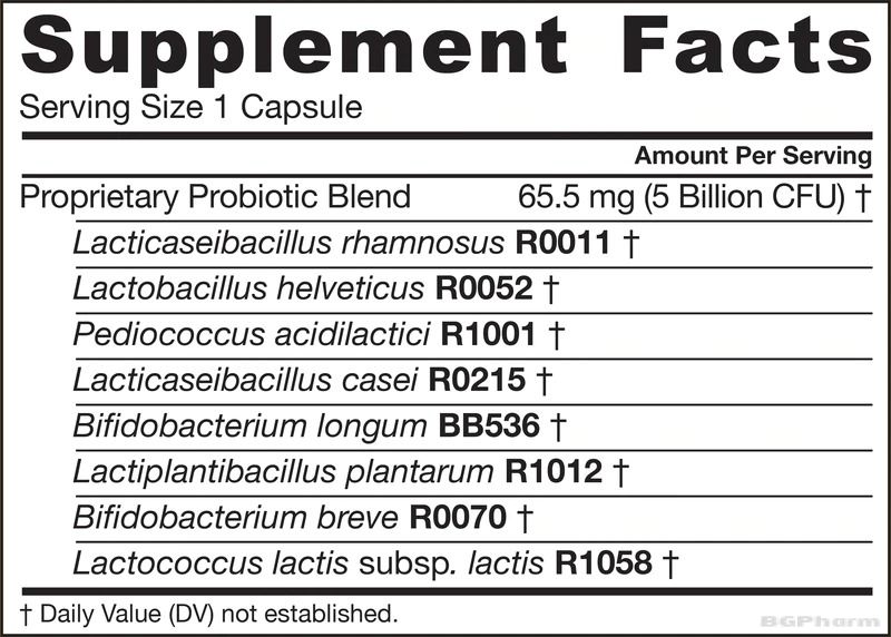 Висококачествен пробиотик, съдържащ 5 милиарда CFU (колониеобразуващи единици) на капсула, състоящи се от осем допълващи се пробиотични щама от шест рода: Lactobacillus, Bifidobacterium, Lacticaseibacillus, Lactiplantibacillus, Lactococcus и Pediococcus. Тази синергична комбинация подпомага здравето на целия чревен тракт и имунната система, като насърчава баланса на чревната микрофлора и подобрява храносмилателната функция. Капсулите са с ентерично покритие EnteroGuard®, което предпазва пробиотиците от стомашната киселина и осигурява доставянето им в червата. Продуктът е стабилен при стайна температура и не изисква охлаждане, благодарение на индивидуалната блистерна опаковка, която предпазва от влага и кислород.