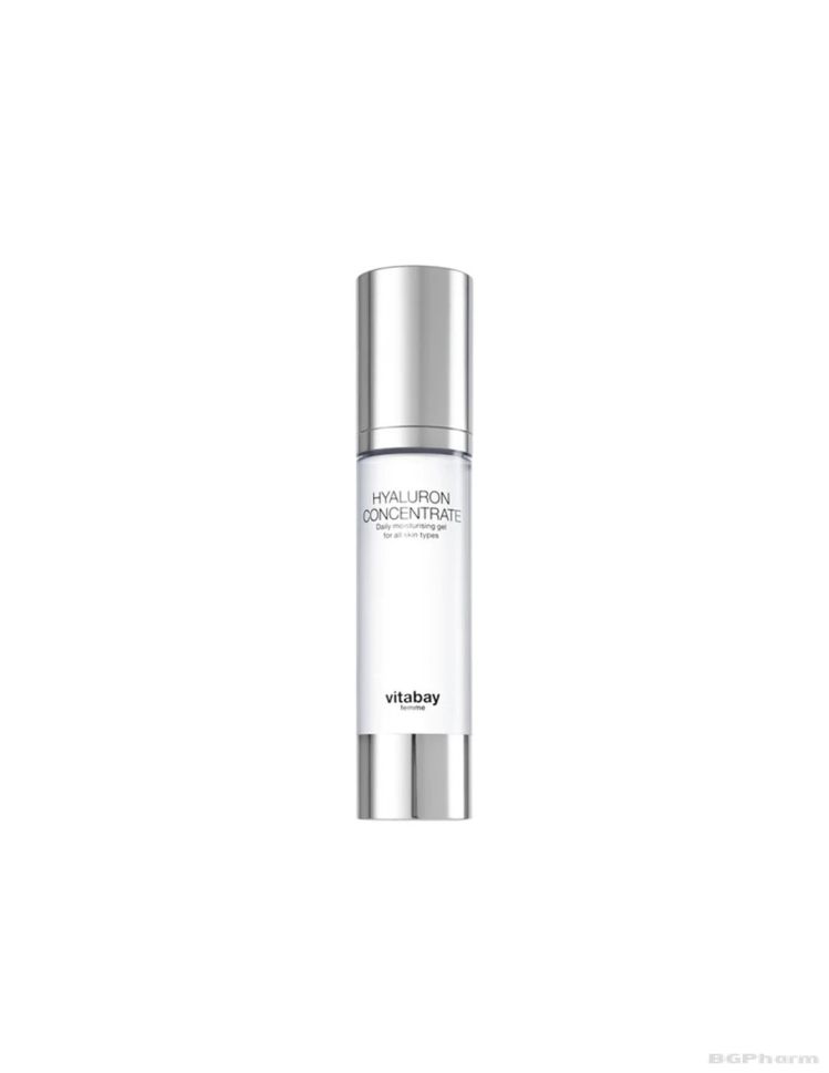 Гел концентрат с хиалуронова киселина, на немската компания Vitabay, е високоефективна хидратираща и анти-ейдж грижа за лице. С 3 форми на хиалуронова киселина, гарантиращи проникване в дълбоките слоеве на кожата и тройно подсилен ефект против бръчки